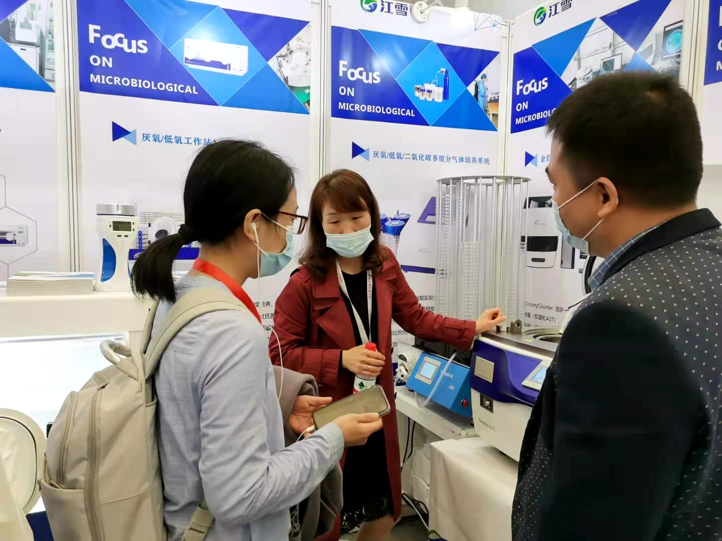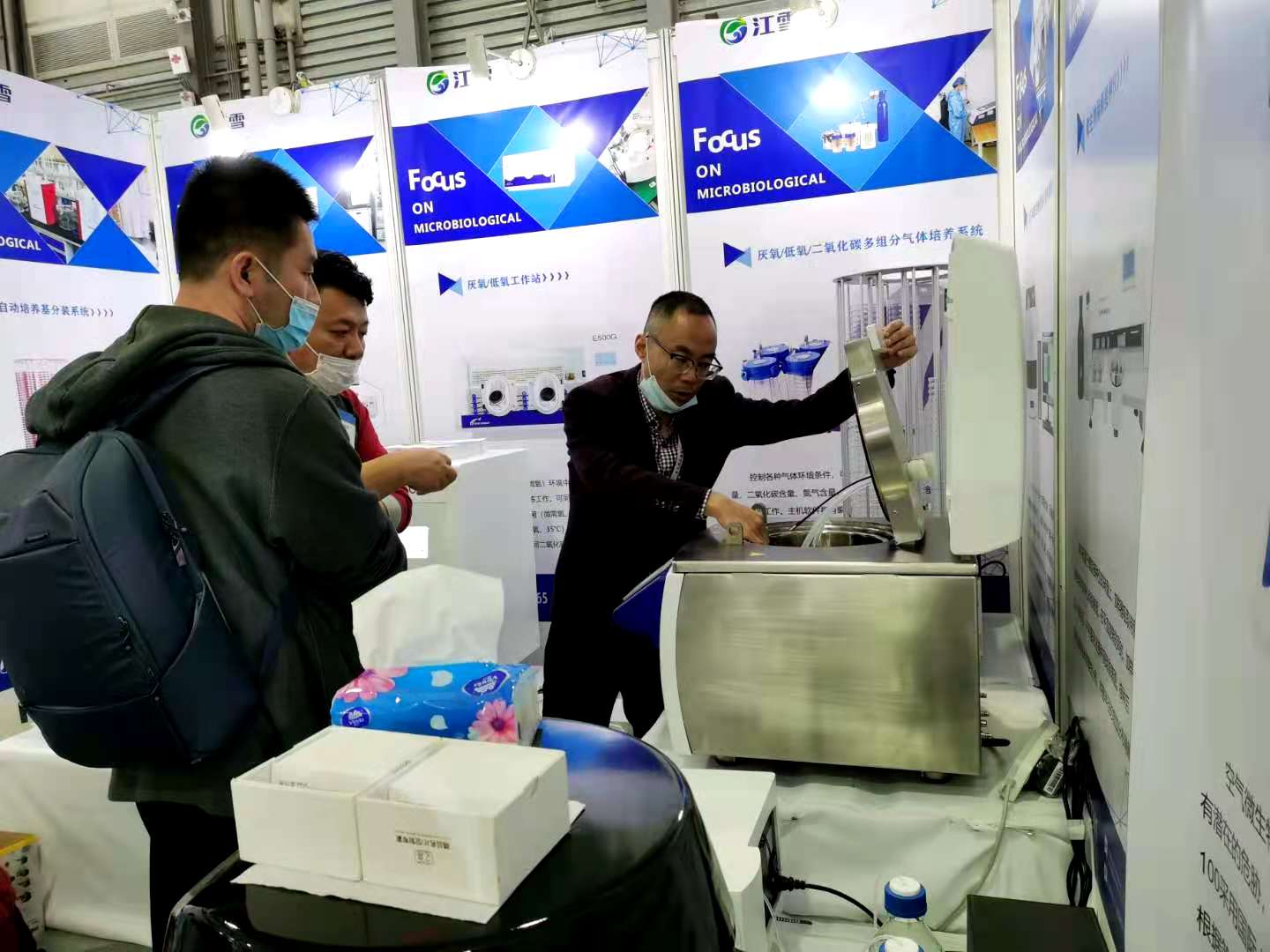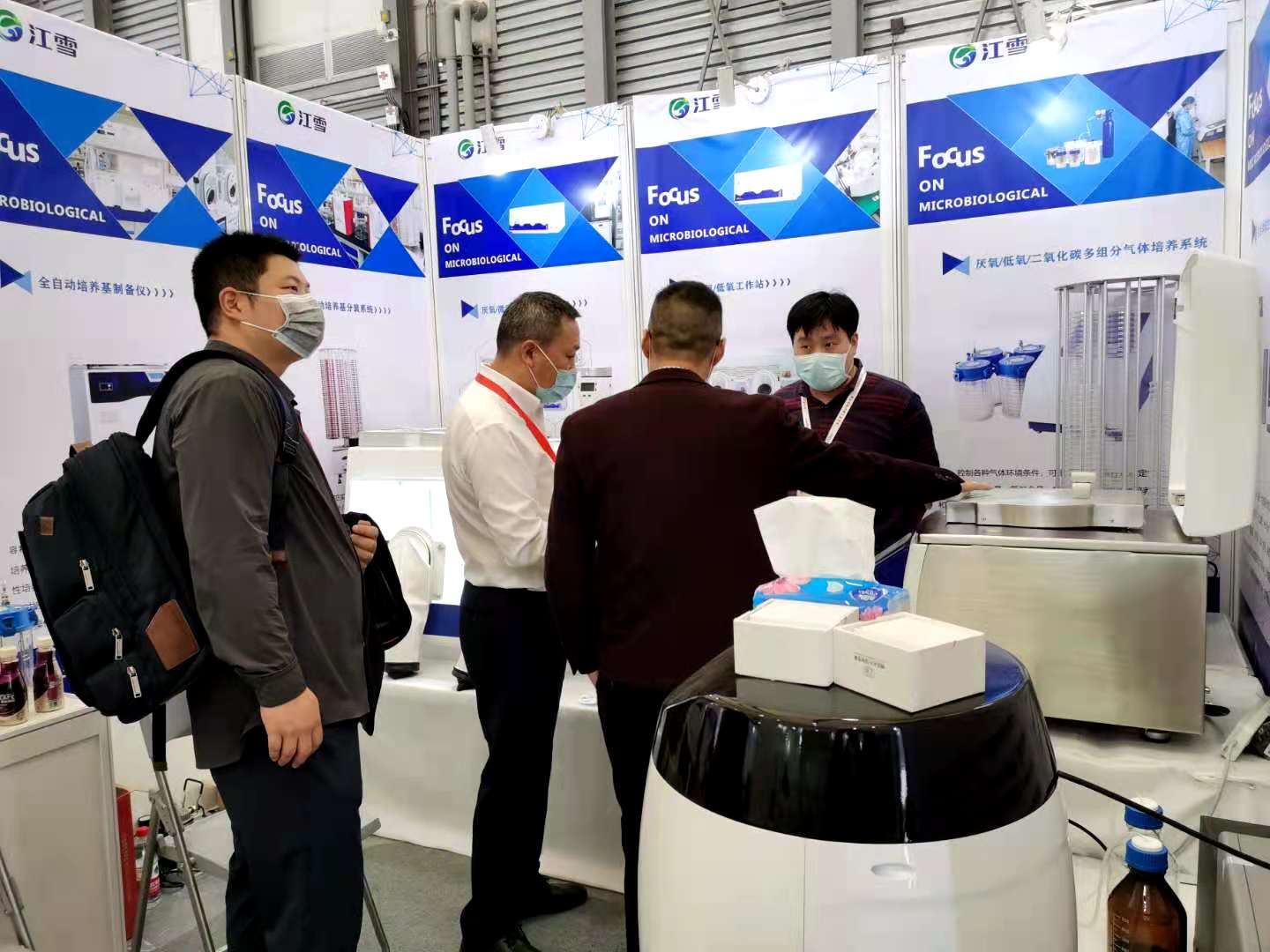 重慶江雪科技有限公司參展analytica China,重點展出了厭氧工作站、螺旋接種儀、培養基制備與分裝系統、菌落計數儀、空氣采樣儀等產品。我公司的展品吸引了眾多參觀者前來駐足觀摩,現場氣氛熱烈,秩序井然。工作人員熱情地接待了來訪的重多客人,認真解答各種問題,并相互交換了名片。